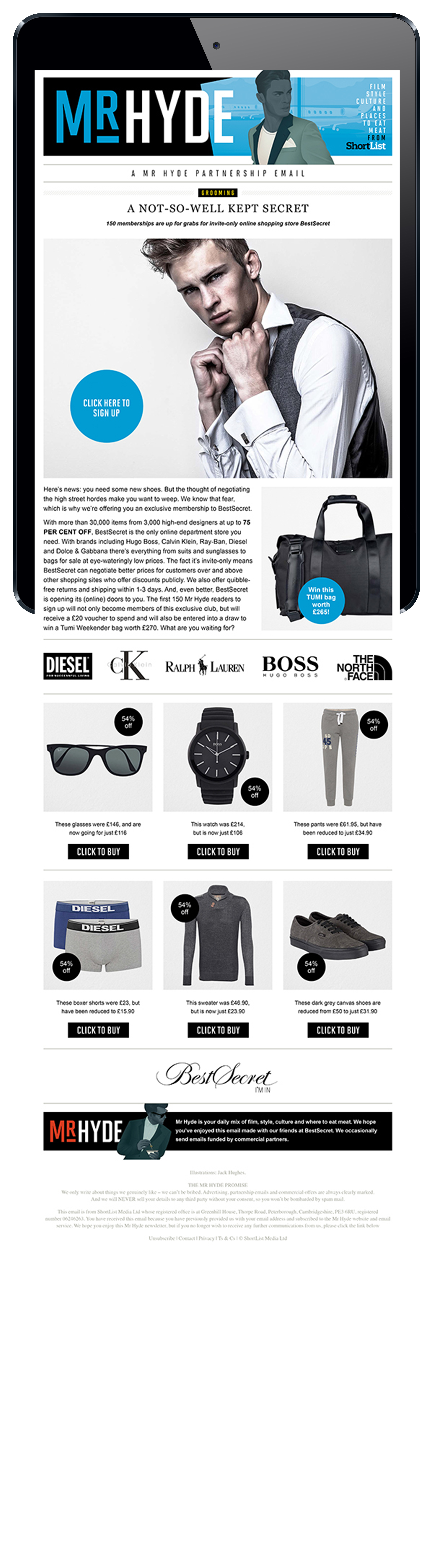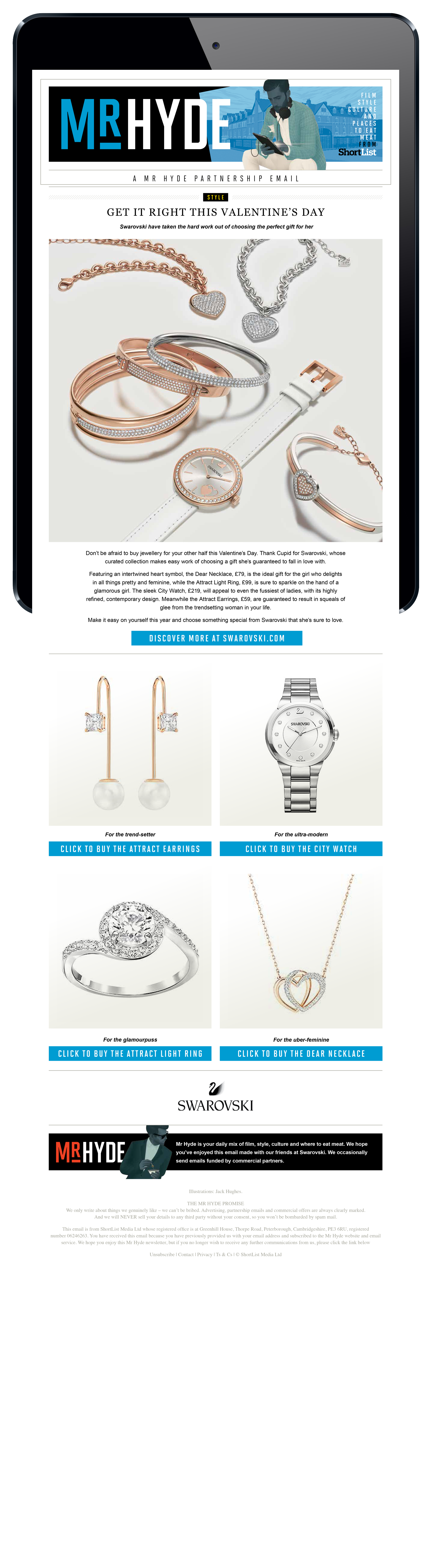 Email page builds for Emerald Street and Mr Hyde weekly brand partnerships.