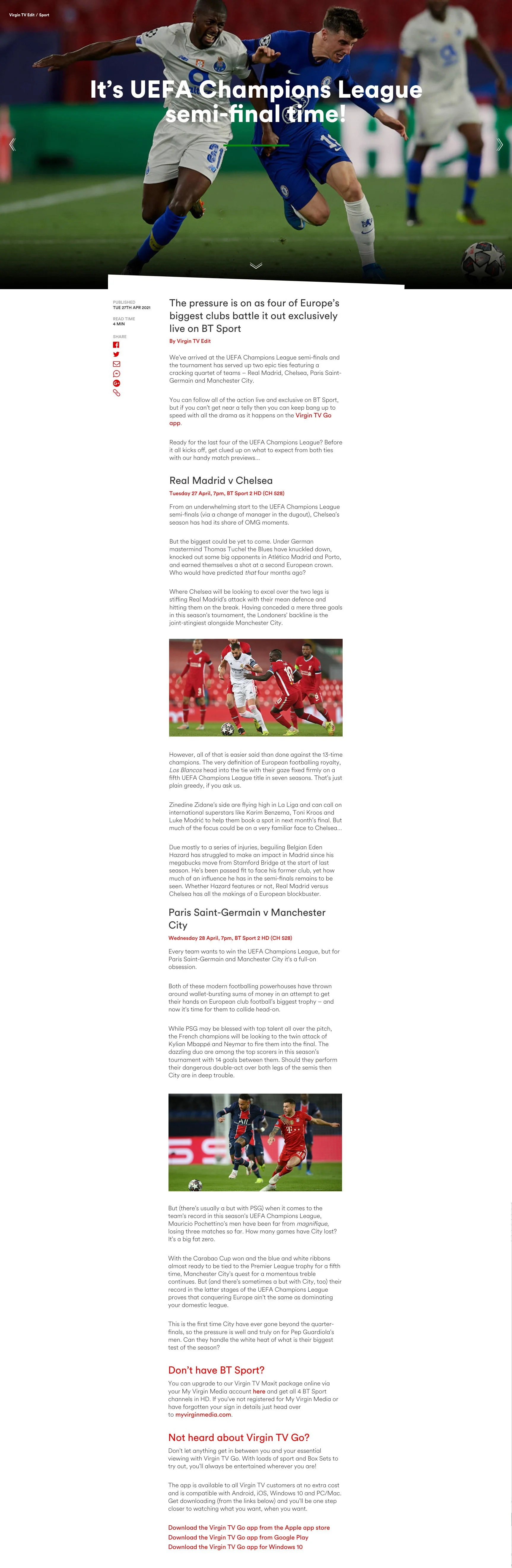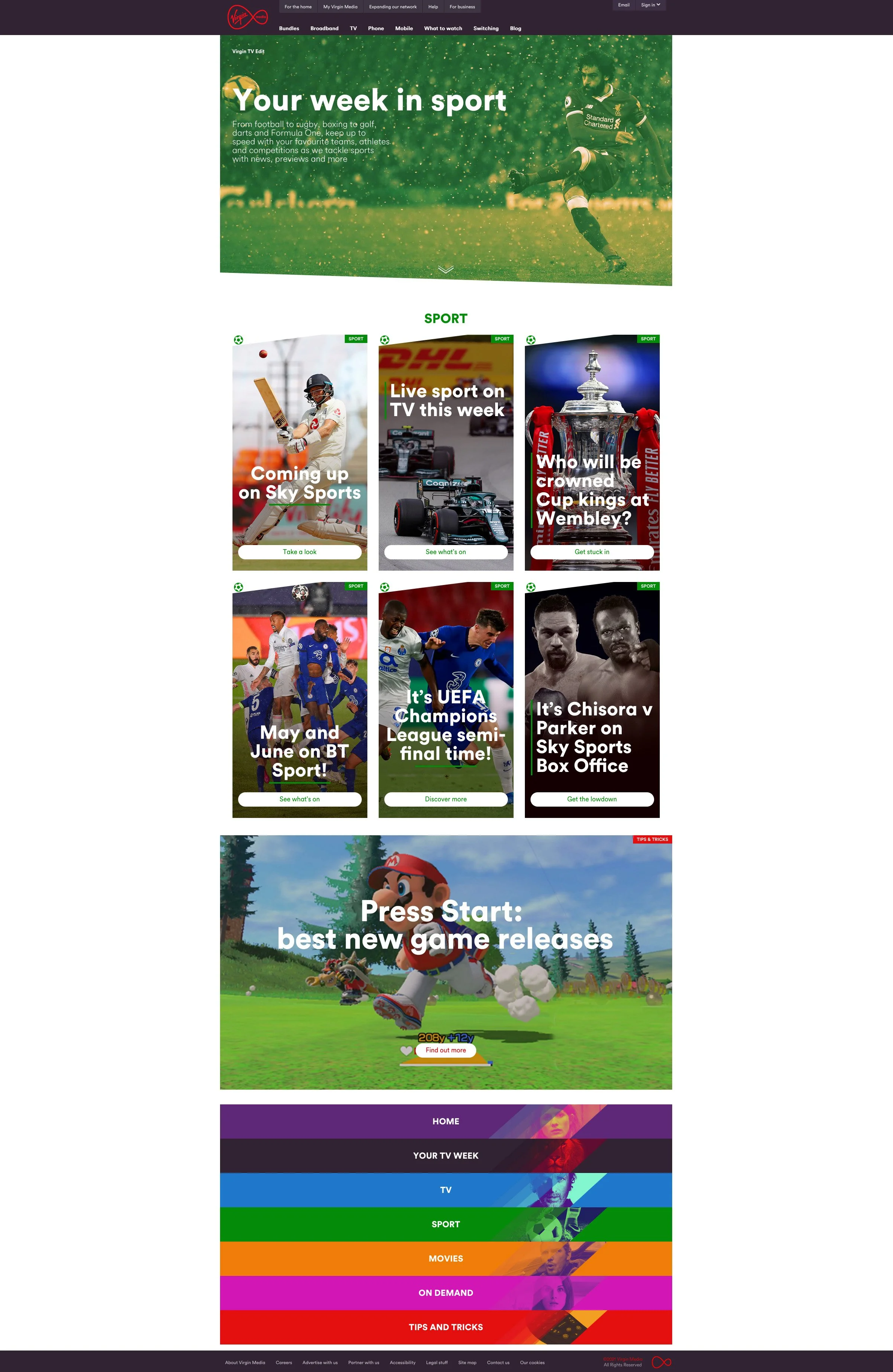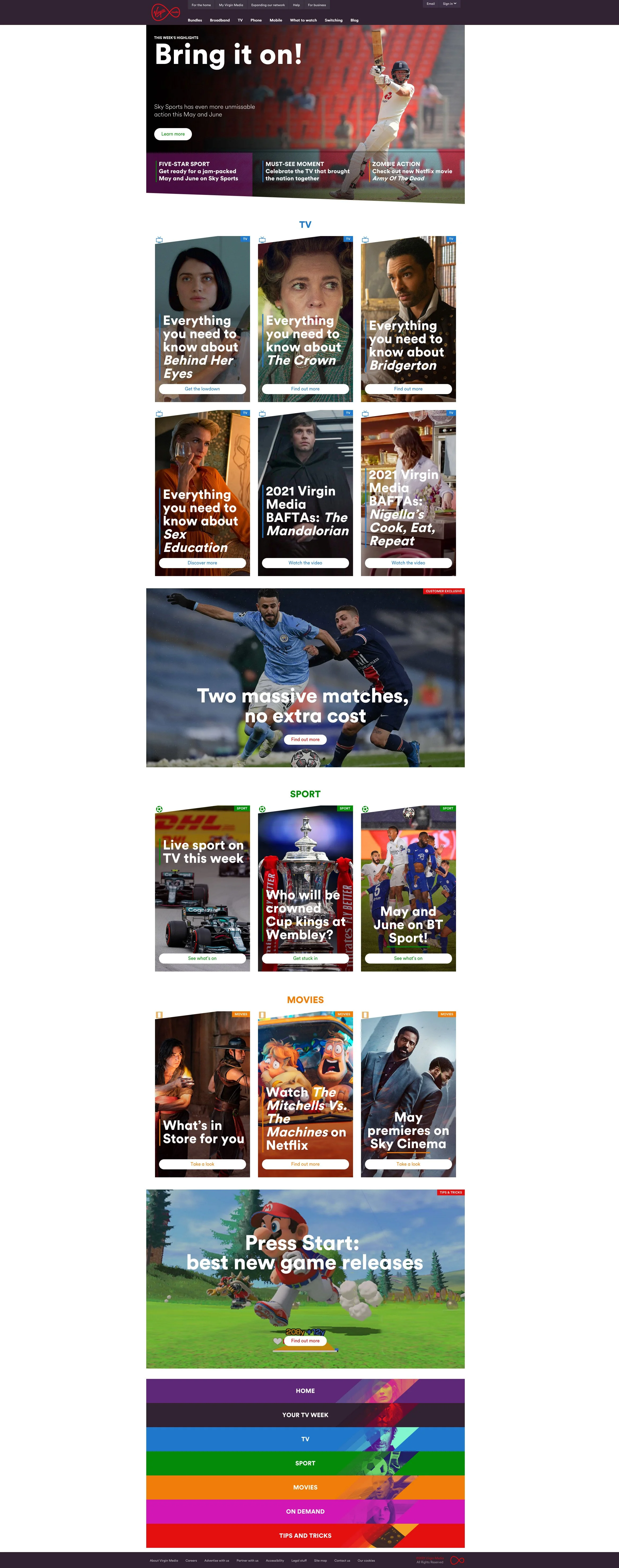 Mobile and website page designs for Virgin Media