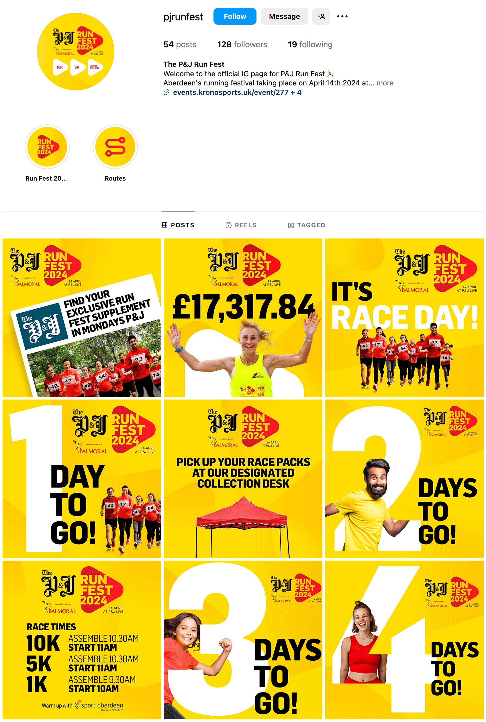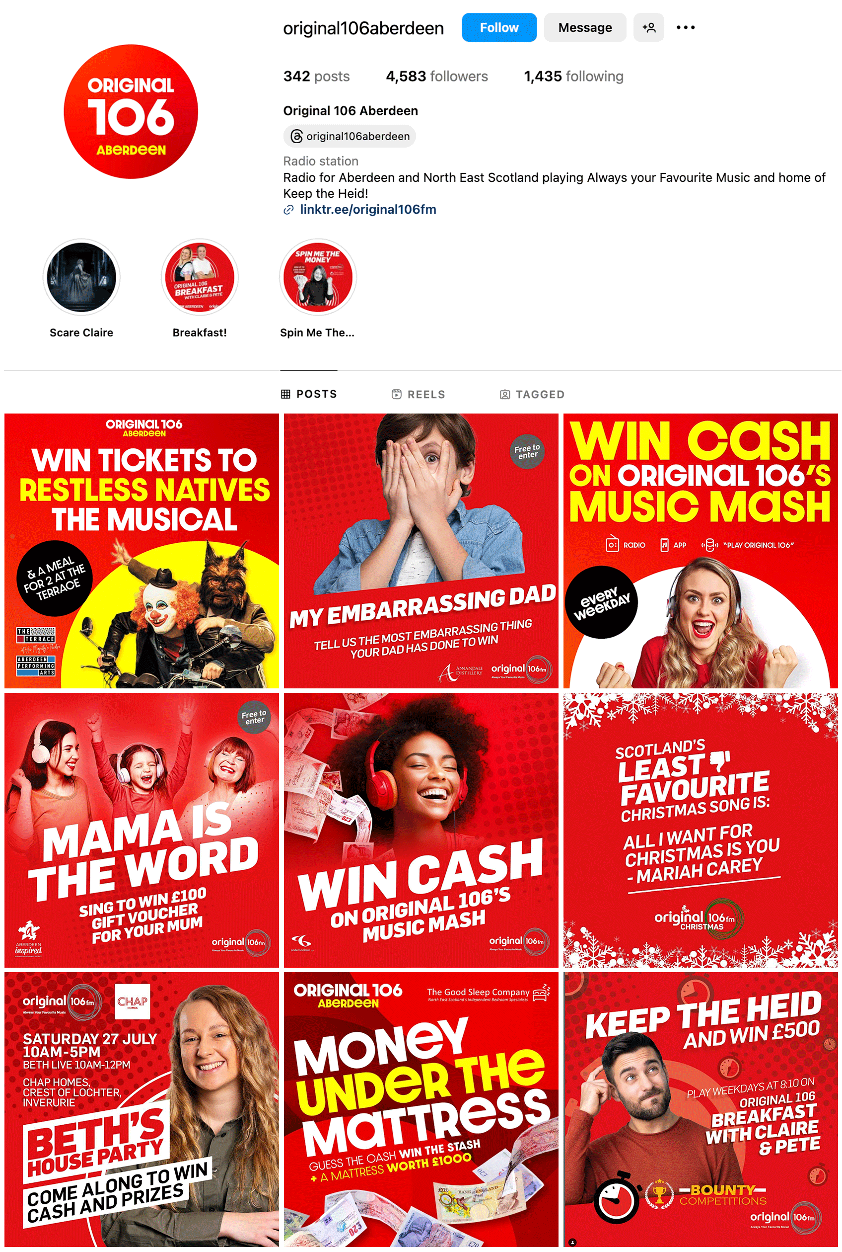 Designs for daily Instagram posts for radio station Original 106 competitions and Press & Journal ‘Run Fest 24’ event promotions